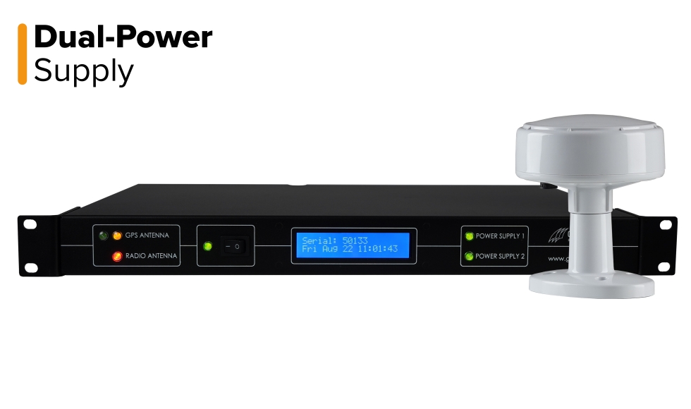 Mit zwei Stromquellen gibt Ihnen der NTS-7002-GPS die Sicherheit einer unterbrechungsfreien Synchronisierung mit höchster Genauigkeit. Die Pulse-per-Second-(PPS)-Sperre macht den GPS Zeitserver mit redundanter Stromversorgung auf 0,01 ms genau.